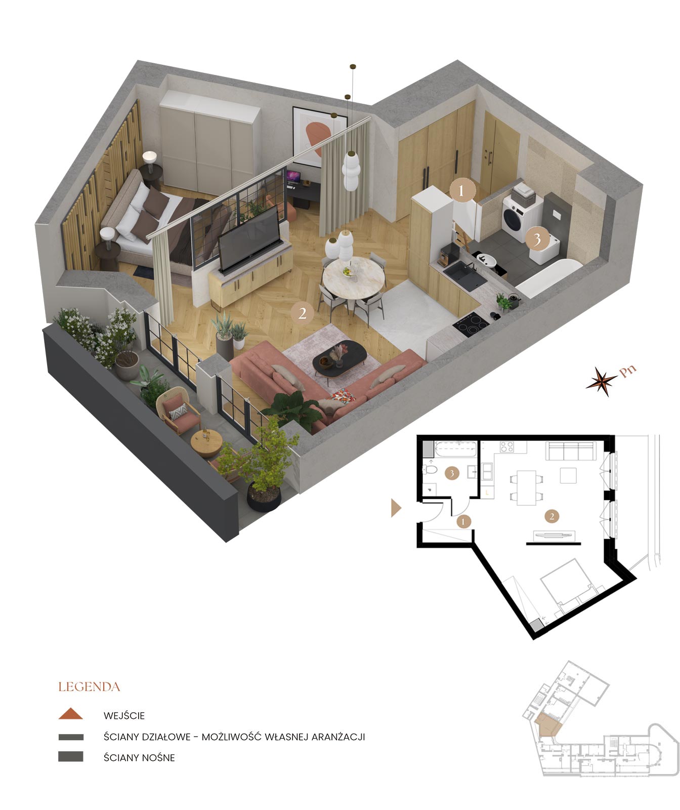 Pokoje: 1 Kondygnacja: 3 Powierzchnia: 51.80 m2